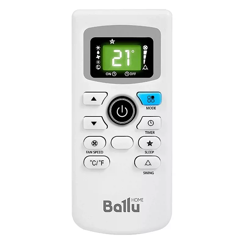 Управлять кондиционером Ballu BPAC-16 CE 20Y можно как кнопками на лицевой панели, так и с помощью пульта ДУ. Выбранные настройки отображаются на дисплее. Благодаря подсветке все показатели хорошо считываются при любом освещении.