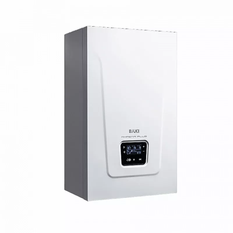 На дисплее с подсветкой отображаются рабочие параметры, такие как ступень мощности, температура теплоносителя, код ошибки и прочие. Котел функционирует по графику, указанному в настройках. Благодаря возможности установки трехходового клапана к электрическому котлу BAXI можно подключить бойлер для организации горячего водоснабжения. В этом случае становится доступной функция «антилегионелла». Она предназначена для периодического нагрева воды в контуре ГВС до высокой температуры с целью уничтожения болезнетворных бактерий и обеззараживания бака.