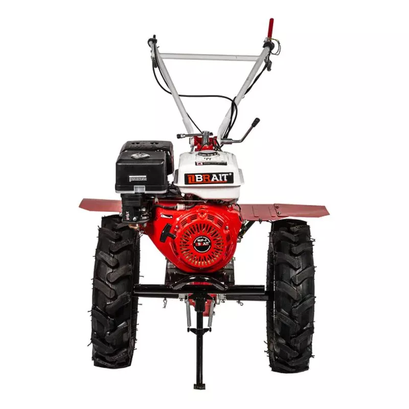 Бензиновый мотоблок BRAIT-135GE отличается многофункциональностью, мощностью и прочностью конструкции. Используется для вспашки земли. Усиленная рама обеспечивает удобство погрузки/разгрузки мотоблока. Агрегат имеет цельнолитой чугунный редуктор, который отличается долговечностью. В комплект входят большие пневматические колеса. Возможна установка навесного оборудования (опция): тележка, плуг, окучник, картофелевыкапыватель. У мотоблоков BRAIT предусмотрена многофункциональная поворотная ручка управления для оператора. Возможность менять положения как по горизонтали, так и по вертикали значительно упрощает работу в труднодоступных местах. Сама рама выполнена из специально усланного сплава чугуна дополнительной толщины, в отличии от упрощенных алюминиевых конкурентов. Большие пневматические колеса обеспечивают отличную проходимость мотоблока по местности.