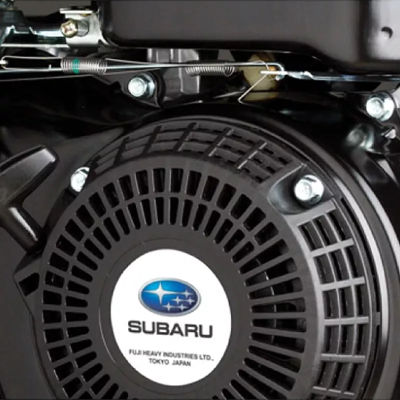 - Четырехтактный бензиновый двигатель Subaru EP17 OHC (Япония). Не требует приготовления смеси бензина с маслом, как двухтактные двигатели. Прост в эксплуатации и обслуживании, легко запускается. Чугунная гильза цилиндра, а также оптимальная система охлаждения и смазки обеспечивают повышенную надежность двигателя и его износостойкость.