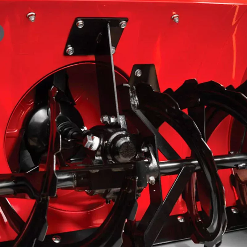 - 2 ступень – крыльчатка с частотой вращения 1200 об/мин. Лопасти крыльчатки усилены металлическими пластинами. Такая конструкция позволяет отбрасывать снег на расстояние до 20 метров.