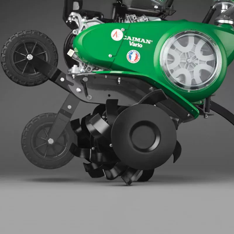 Cаблевидные фрезы Razor Blade На всех моделях мотоблоков Caiman Vario установлен набор быстросъемных фрез Razor Blade. Благодаря ему вы можете быстро и легко менять ширину вспашки. Фрезы изготовлены из особой закаленной стали. Их специальная конфигурация уменьшает вибрацию во время работы, а особый угол заточки позволяет справиться с любым типом почвы.