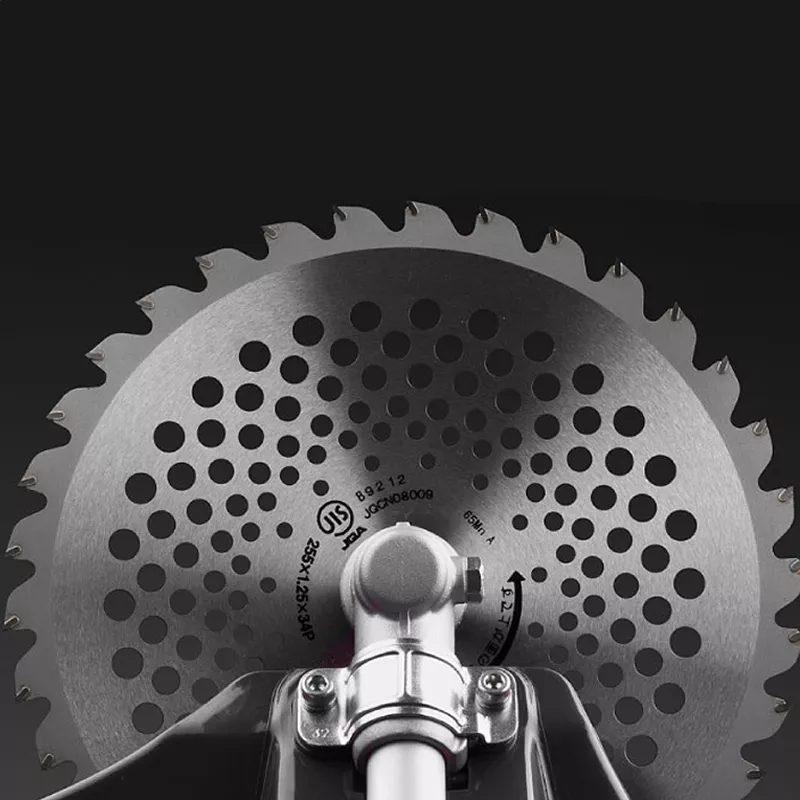 Коса оснащена профессиональным диском Katana Blade диаметром 25,5 см, изготовленным из прочной инструментальной стали с победитовыми напайками. Благодаря фирменной технологии заточки пластин с четырьмя режущими кромками инструмент легко справится с тонкими ветками деревьев. В комплекте также идет триммерная насадка с леской диаметром 2,4 мм. В данной модели допускается использование лески 3,5 мм, что повышает производительность косы и облегчает работу возле заборов, бордюров и под кустами.