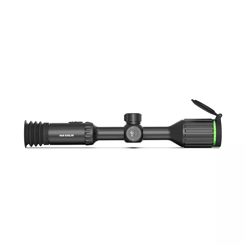 12-часовую автономность обеспечивает двойная встроенная батарея 18650 и дополнительный элемент питания 18500 (поставляется в комплекте). Для более длительной работы, прицел можно подключить к внешнему источнику питания, использовав порт USB Type-C.