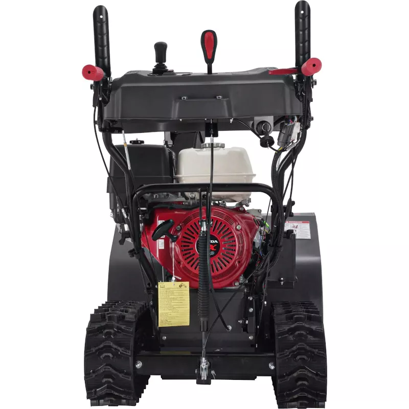 Благодаря гусеничному механизму машина отличается высокой проходимостью — не скользит на склонах в гололедицу, легко преодолевает неровности, не буксует в глубоком снегу. С функцией рулевого управления вы можете временно отключить одну ведущую гусеницу, другая продолжит движение и вы легко развернете машину. Гидростатическая трансмиссия обеспечивает плавность в переключении передач и бесступенчатую регулировку скорости. В результате двигатель работает в более энергосберегающем режиме, что повышает долговечность всего снегоуборщика.
