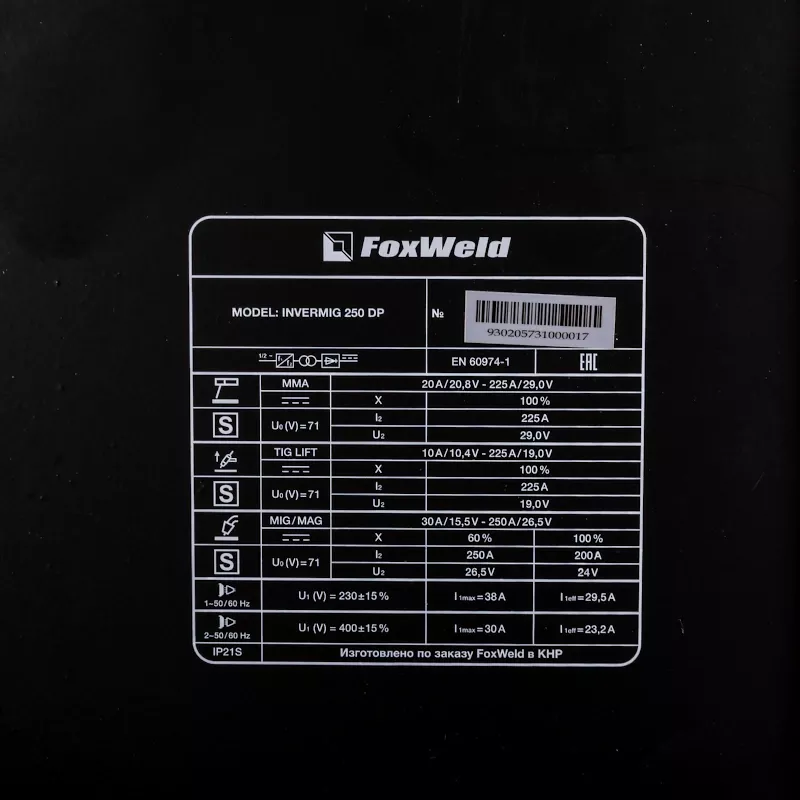 FoxWeld INVERMIG 250 DP сварочный полуавтомат (MIG/MAG) 9302