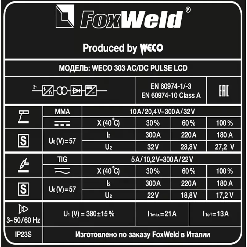 FoxWeld WECO TIG 303 AC/DC PULSE LCD аппарат аргонодуговой сварки 7882