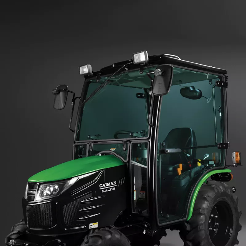 Комфортабельная кабина для машин Caiman Dako предусмотрена возможность установки кабины с окнами из закаленного стекла и системой подогрева для работы в неблагоприятных погодных условиях. На дверях установлены замки с амортизаторами. Кабина имеет дополнительные фары и передний электрический стеклоочиститель.