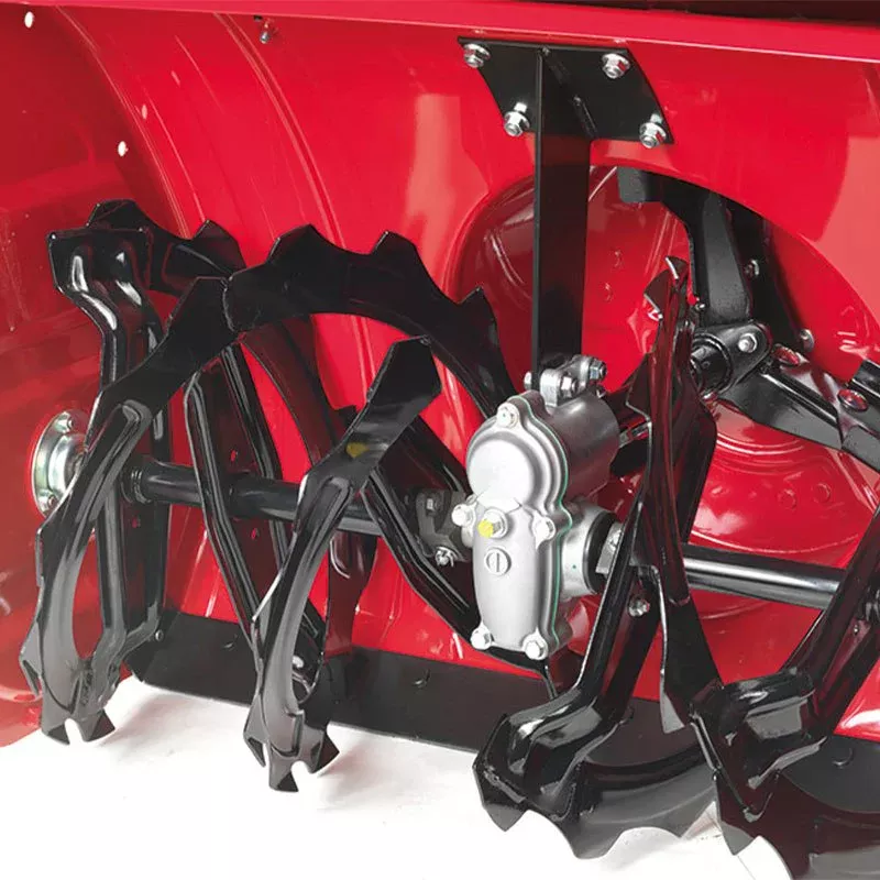 - Электрическое управление патрубком выброса снега с возможностью регулировать направление выброса с помощью джойстика на панели управления;