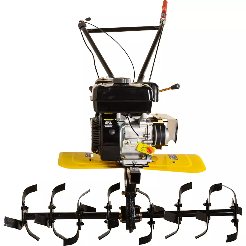 Бензиновый мотоблок комплектуется стальными фрезами с широким захватом и большой глубиной обработки, которые обеспечивают высокую производительность вспашки. Сошник, углубляясь в землю на установленный уровень, обеспечивает равномерную обработку почвы и устойчивость машины.