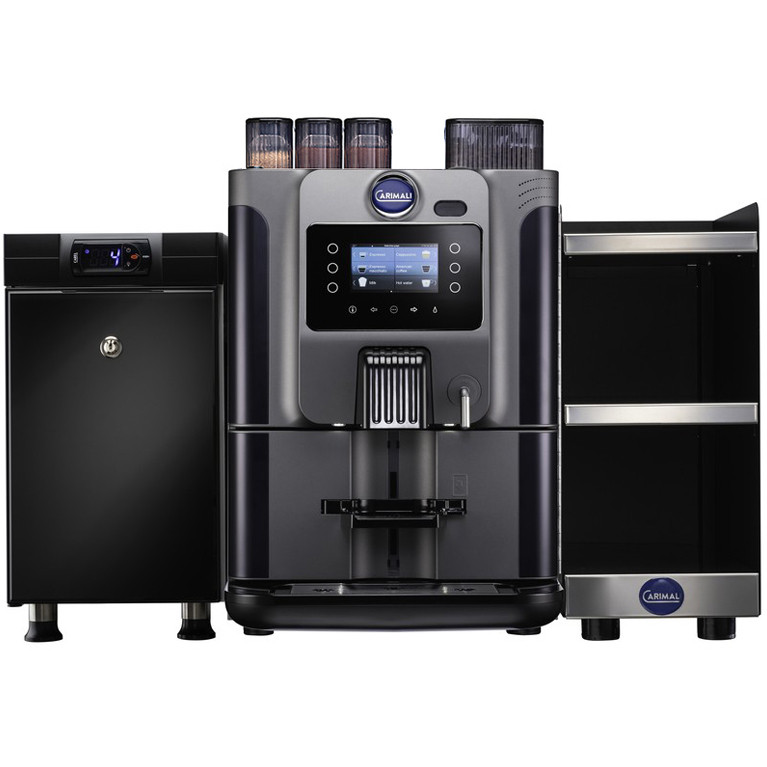 Суперавтоматическая кофемашина Carimali BlueDot BD-01-01-03 со встроенной кофемолкой, предназначена для приготовления превосходного кофе и кофейных напитков из натурального зернового кофе и натурального молока. Кофемашина Carimali Blue Dot компактная, ее высота менее 60 см. И поэтому она может быть установлена в стандартный кухонный шкаф – оптимальное решение для офиса. Производительность до 100 чашек.