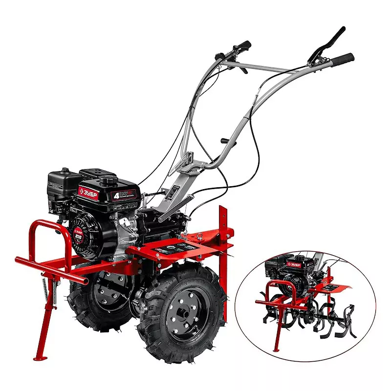 - Мощный 4-хтактный двигатель ЗУБР - надежность в эксплуатации;