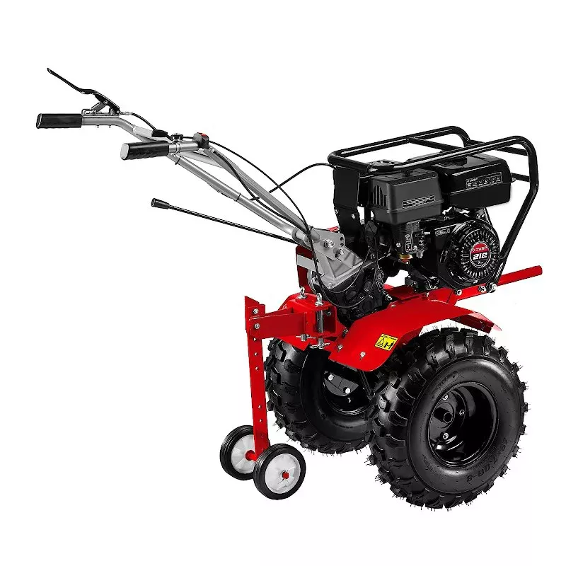 Пневматические колеса гарантируют хорошую проходимость и защищают тротуарные дорожки или газон от повреждения ножами.