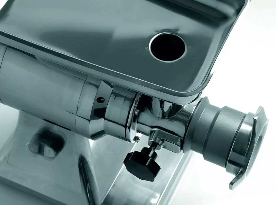 Мясорубка Fama TS 22 FTS 136UTE с системой ножей Unger — образец высококачественного оборудования, применяемого в ресторане, баре, кафе или пиццерии для измельчения мяса или птицы на фарш. Мясорубка незаменима на любой профессиональной кухне.