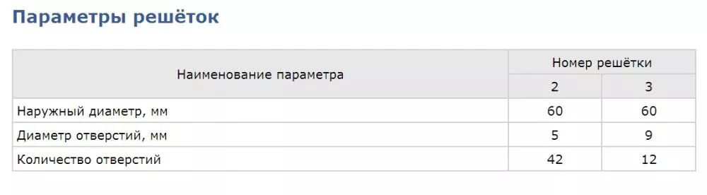 _ отверстий решетки, мм