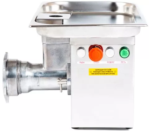 • Деформация агрегата исключена ввиду использования при его изготовления надёжного материала – массивной нержавеющей стали. Руки персонала защищены предохранителем, который блокирует свободный доступ к вращающемуся шнеку.