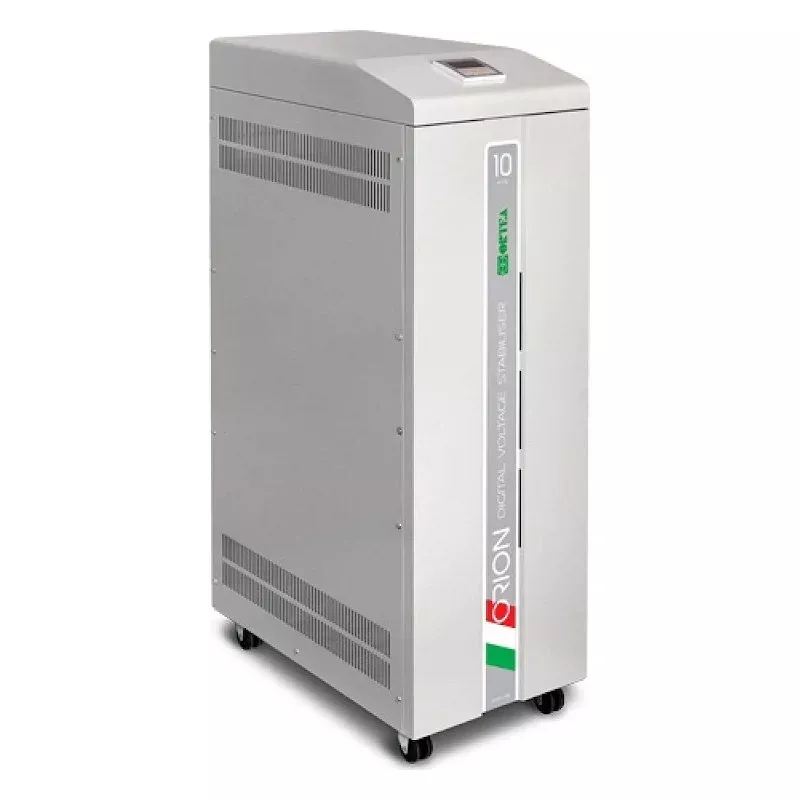 Стабилизатор напряжения ORTEA Orion 15 используется для защиты оборудования от скачков в трехфазной электросети. На корпусе есть цифровой дисплей, который позволяет отслеживать до 150 различных параметров. Модель поддерживает работу в 2 диапазонах, позволяя выравнивать напряжение до ± 15 % или до 20 ± %.