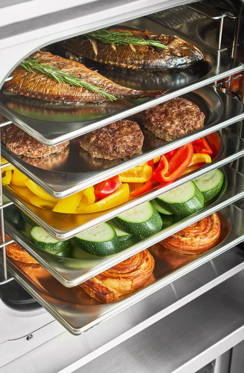 При одновременном приготовлении различных блюд каждое из них сохраняет свой вкус и аромат, большинство витаминов и минеральных веществ, выглядит аппетитным и свежим.
