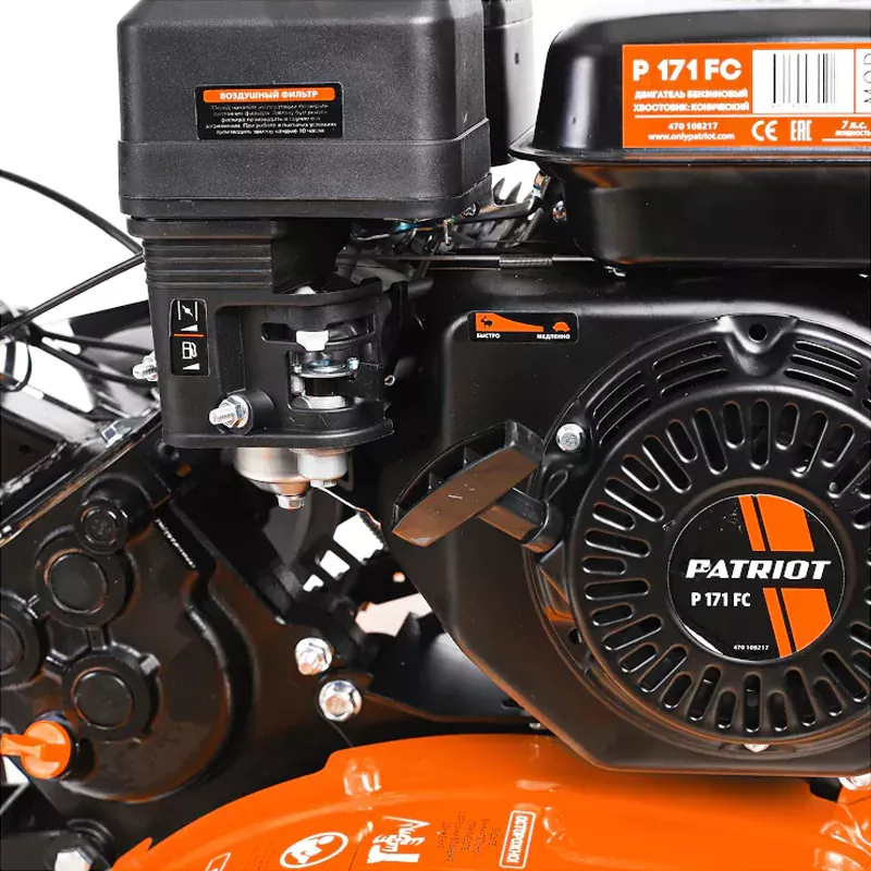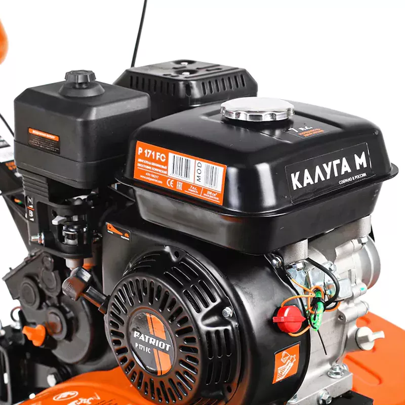 Мотоблок PATRIOT КАЛУГА М оснащен качественным, устойчивым к износу чугунным редуктором. Отсутствие швов позволяет избежать протечки масла. Специальный кожух защищает редуктор от попадания внутрь камней и грязи.