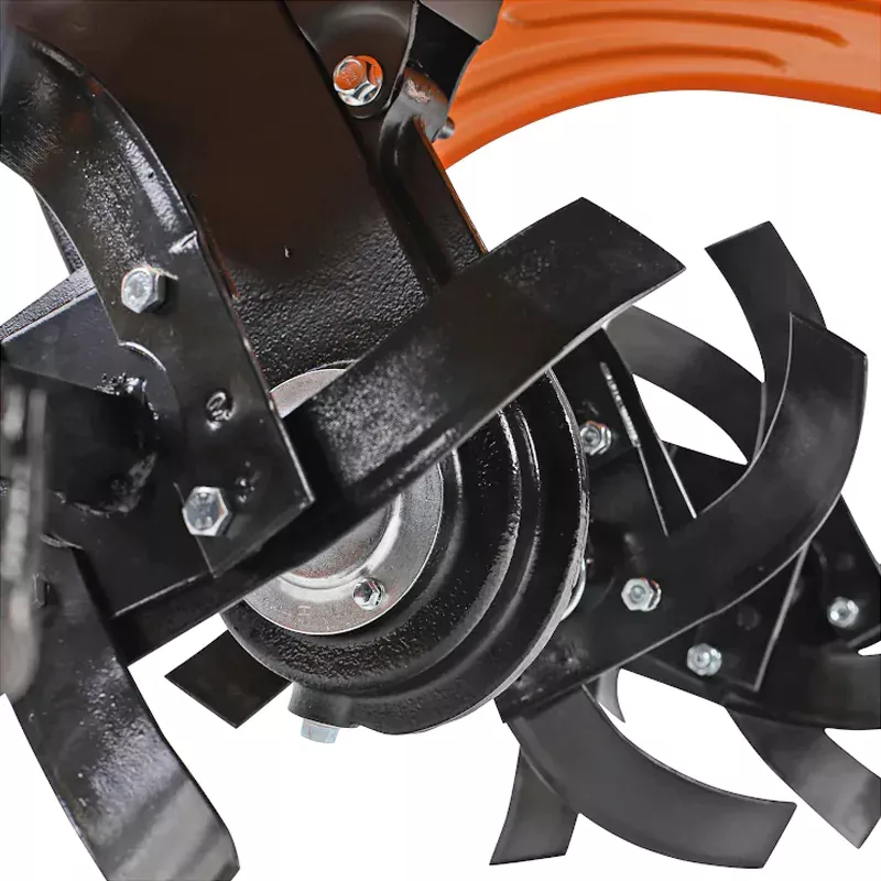 Комфорт в управлении обеспечивают резиновые накладки на рукоятях, а также возможность настроить положение руля под себя. Широкие брызговики защищают оператора от земли, вылетающей из-под фрез. На время перевозки и хранения рукоятку и сошник можно снять – это поможет сэкономить место.