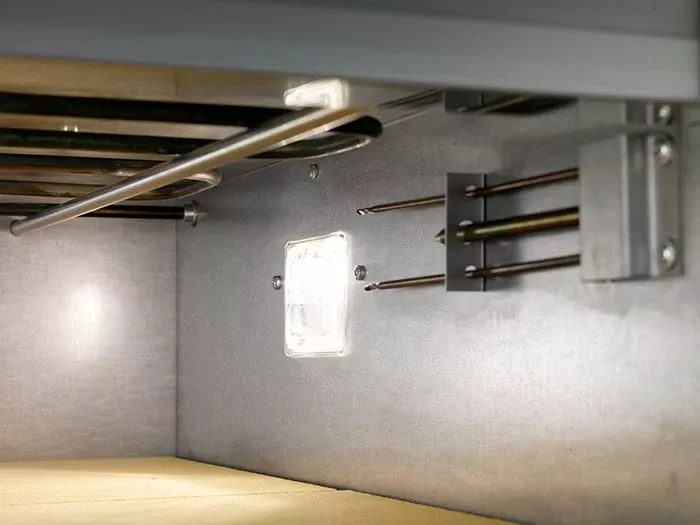 Освещение пекарной камеры галогенной лампой.