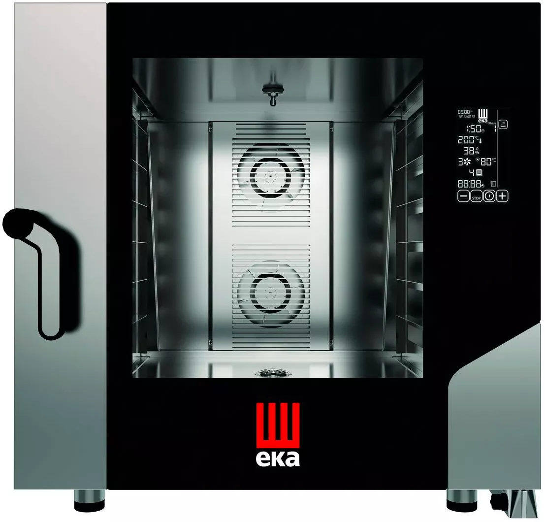 Печь конвекционная электрическая Tecnoeka MKF 664 BM автомойка + термощуп серии Millenial Black Mask предназначена для профессиональных пекарен, супермаркетов, заправочных станций – везде, где требуется выпечка любого высококачественного хлеба и кондитерских изделий.