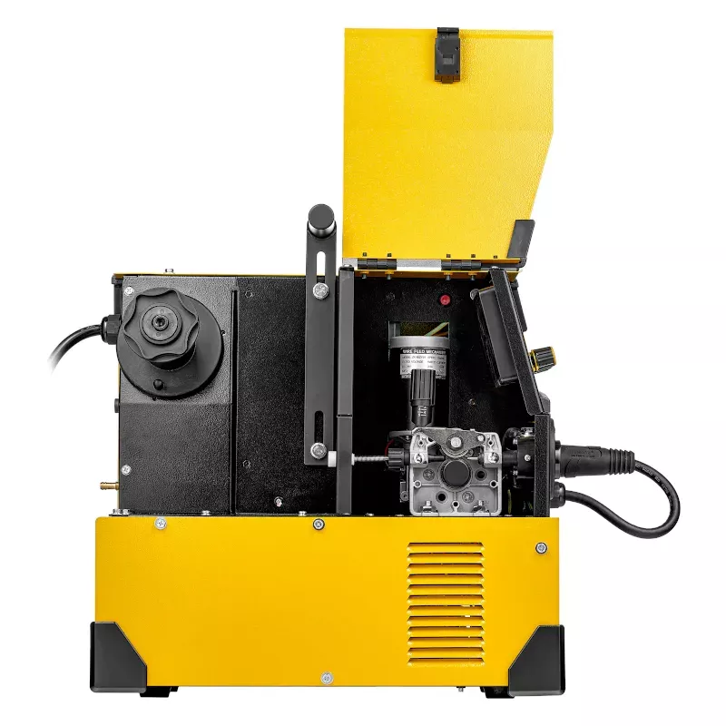 - Металлический механизм подачи проволоки. Используется сварочная проволока диаметром от 0,6 до 1,0 мм. Можно установить катушку с проволокой весом до 18 кг (D300) и регулировать скорость подачи проволоки от 2,5 до 13 м/мин.