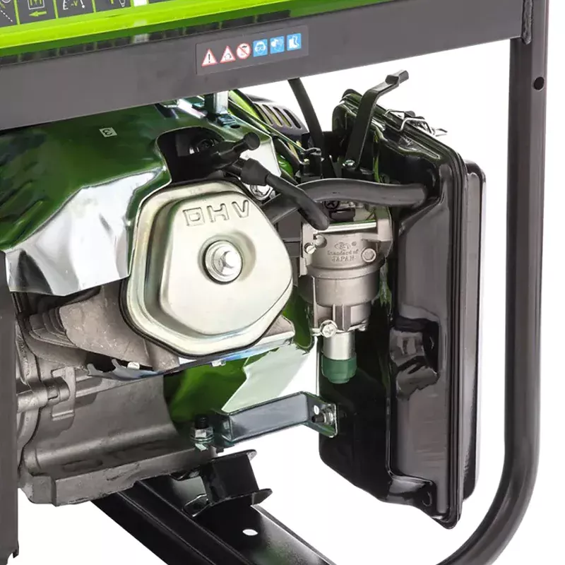 В бак с указателем уровня бензина и широкой горловиной легко заливать топливо. Благодаря простому доступу к свече зажигания, воздушному и топливному фильтрам можно самостоятельно производить техобслуживание. Надежный стрелочный вольтметр удобен для отслеживания текущего напряжения.