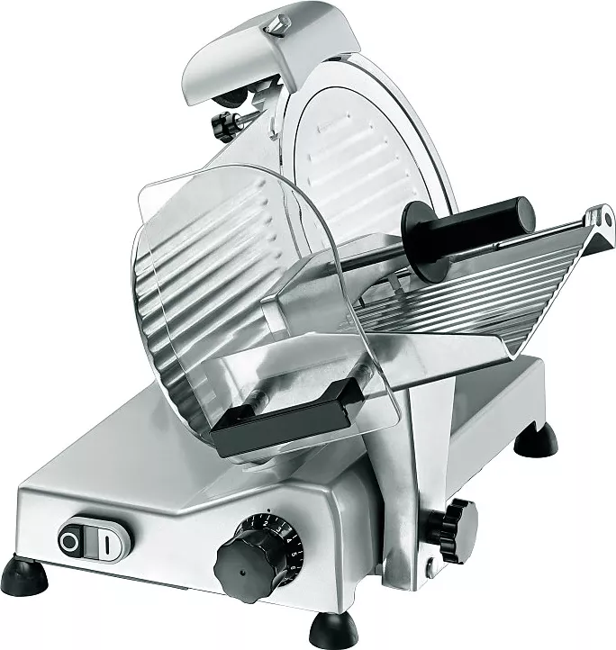 Слайсер Hualian Machinery 250ES-10 предназначен для нарезки мяса, сыра, колбасных изделий и других продуктов питания на ровные и равные ломтики на предприятиях общественного питания и торговли.