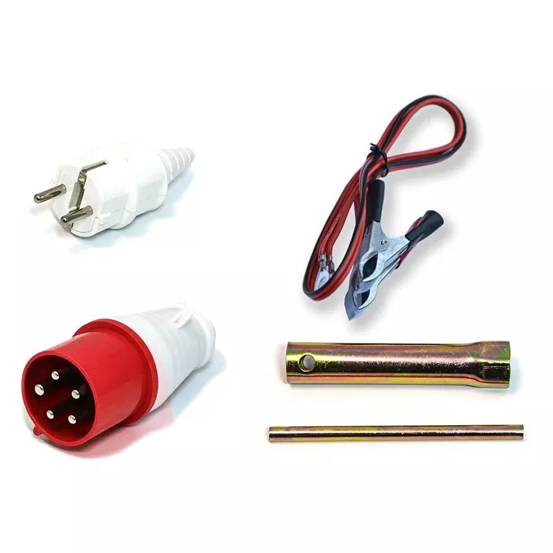 Техника подключается к розеткам. На выбор есть выход на 230 В, а также на 400 В. Каждый оснащен защитной крышкой, которая не пропускает пыли, грязи и влаги.