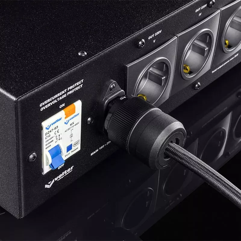 Для подключения однофазных потребителей на корпусе есть 5 розеток. В отличие от стандартных фильтров, которые нивелируют только импульсные скачки электросети, модель сглаживает частотные помехи от 0,001 до 30 МГц. Такой функционал полезен при работе с чувствительным звукозаписывающим оборудованием. А встроенный индуктивно-емкостный фильтр борется с синфазными и симметричными помехами.