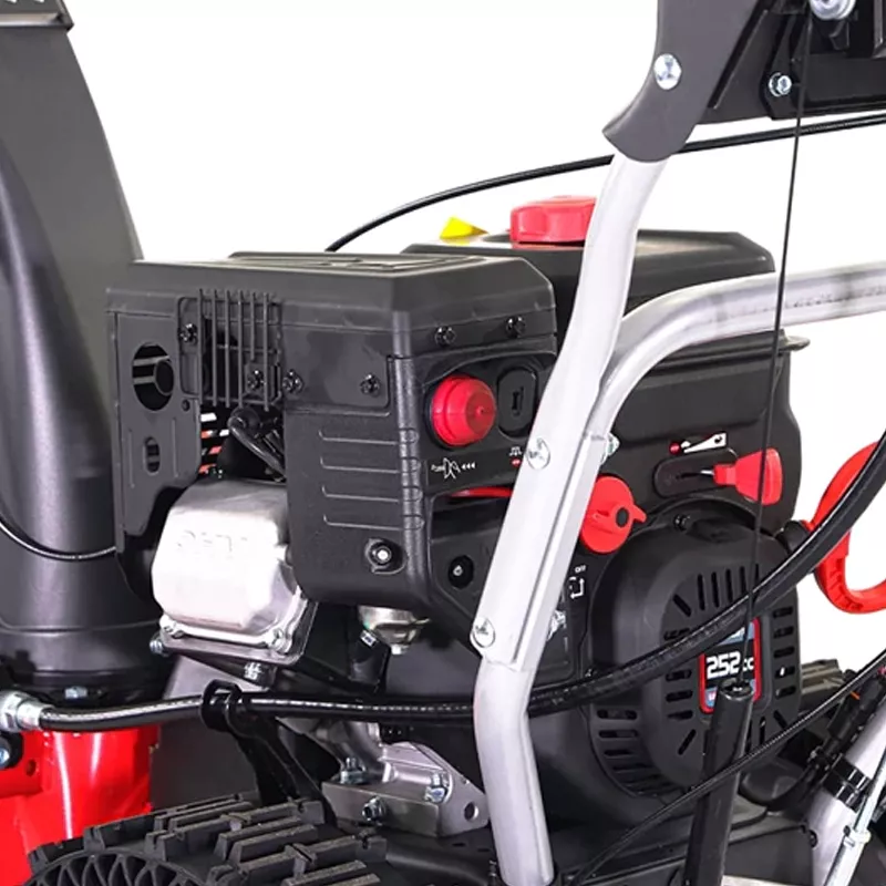 Снегоуборщик ZimAni ST24DLE легко заводится с помощью электрического стартера — достаточно подключиться к сети 220 В. В отсутствии электрической розетки можно воспользоваться ручным стартером. Безвоздушные колеса Airless Tyre обеспечивают высокую проходимость. Большая часть веса приходится на колесную ось, что улучшает сцепление с дорогой даже на льду.