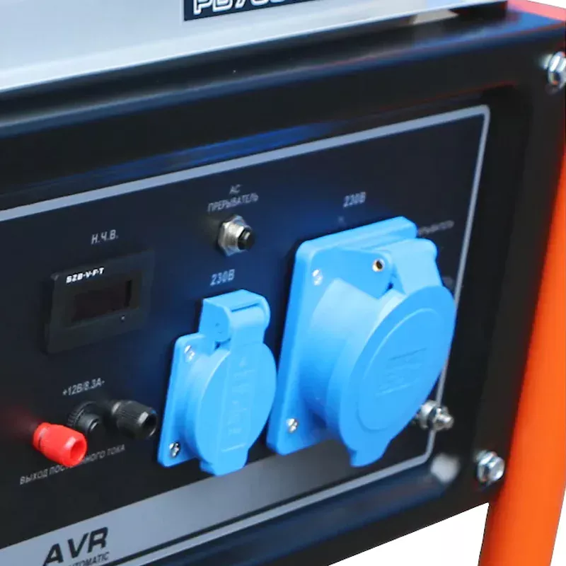 Бензиновый генератор рассчитан на беспрерывную работу в течение 6,5 часов на одной заправке. Расположенный на лицевой панели предохранитель автоматически отключает двигатель в случае короткого замыкания или перегрузки. Потребителей электроэнергии можно подключать к двум розеткам переменного тока 220 В на 16 А. Клеммы постоянного тока могут использоваться для зарядки 12-вольтовых автомобильных батарей. Автоматический регулятор напряжения обеспечивает постоянные стабильные показатели на выходе генератора. Бензобак оснащен указателем уровня топлива, благодаря которому можно вовремя провести дозаправку.